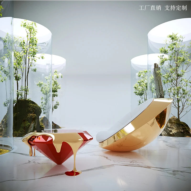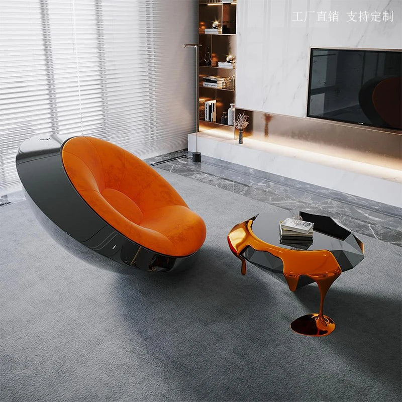 Elevate your living space with the exquisite fusion of Italian craftsmanship and contemporary design. Our Venetian Opulence collection presents a harmonious blend of light luxury and creative flair, showcased in this meticulously crafted Fiberglass Tea Table and Irregular Sofa Chair set. Each piece is a testament to artistry, featuring delicate electroplated accents that add a touch of opulence to any room. Immerse yourself in the allure of modern Italian design and indulge in the luxury of leisure with this captivating ensemble. Experience the epitome of sophistication with the Venetian Opulence collection.
