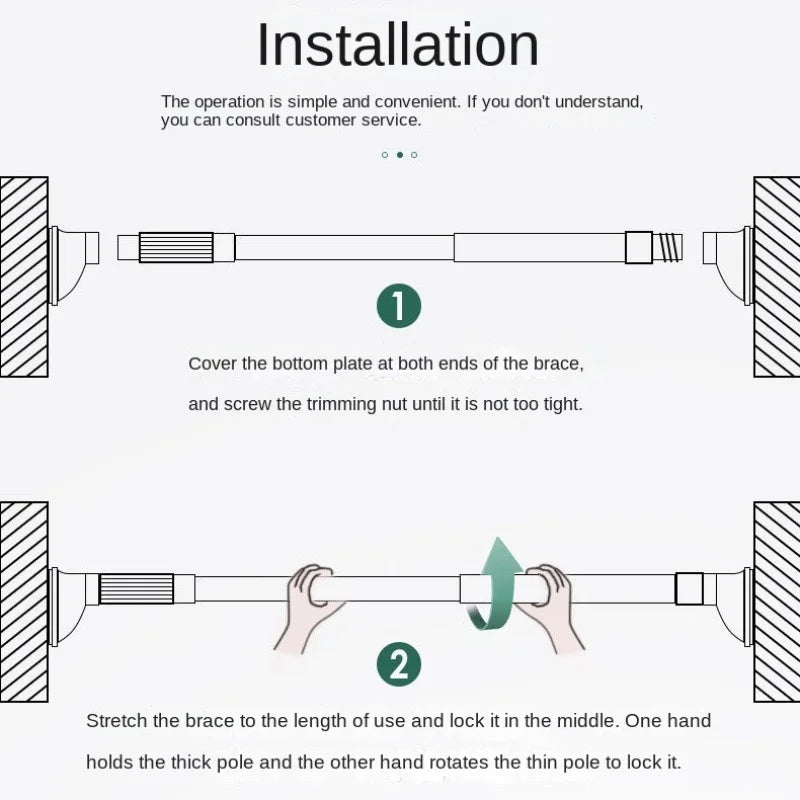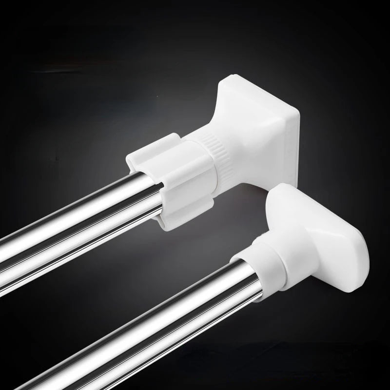 Say goodbye to cluttered shower corners and hello to streamlined organization with our non-punching telescopic design. Effortlessly adjust the rod to fit your shower area perfectly, ensuring a snug and secure fit without the need for tools or permanent fixtures. Its sturdy construction guarantees reliable support for your shower curtain while providing additional hanging space for clothes or towels.