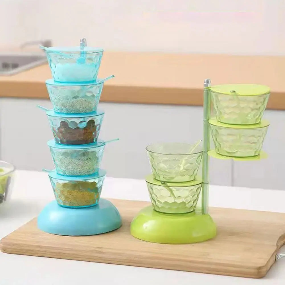 - Five Layer Set: 1 Set of Seasoning Box (5 Pcs), 5 x Spoons