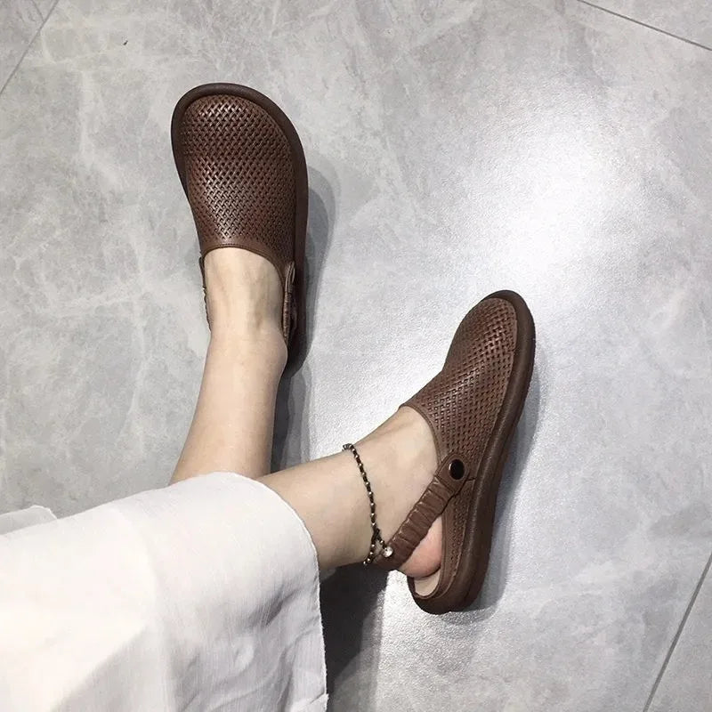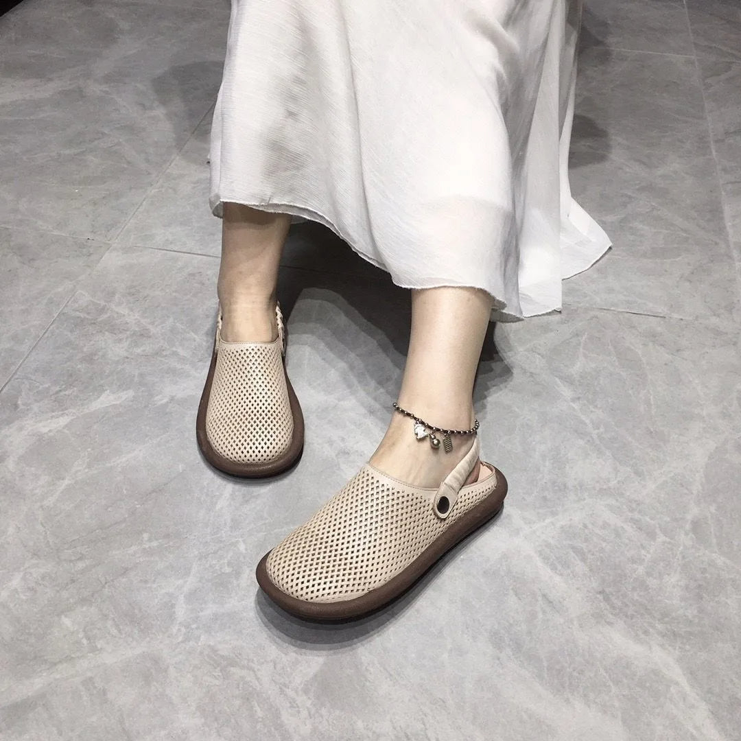 Step into nostalgia with our Vintage Charm Cowhide Women's Sandals. Crafted from high-quality cowhide, these sandals boast a retro punching design that exudes timeless elegance. Perfect for summer days, they offer exceptional breathability and comfort, making them ideal for outdoor adventures or casual strolls. Please select the correct size based on your foot length, as sizing standards may vary between countries. Note that the size number on the outsole corresponds to Chinese sizing. Additionally, slight color variations may occur due to monitor differences. If you detect a slight glue odor upon receiving your sandals, rest assured it will dissipate after airing them out in a ventilated area. Embrace classic style and supreme comfort with our Vintage Charm Cowhide Women's Sandals.