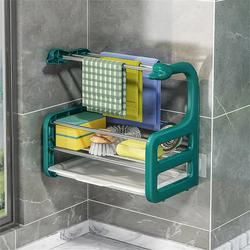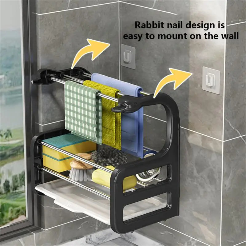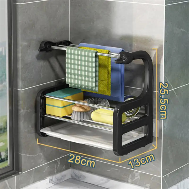 Elevate your kitchen organization with our innovative Sink Rack/Kitchen Rag Holder. Crafted from durable stainless steel and high-quality plastic, this versatile organizer efficiently stores your kitchen essentials. Measuring 281325.5cm, it accommodates various items such as kitchen debris, rags, sponges, and brushes. Its dual-purpose design allows for convenient wall-mounting using hooks or easy disassembly for tabletop placement. Maximize your kitchen space and streamline your workflow with this essential storage solution.