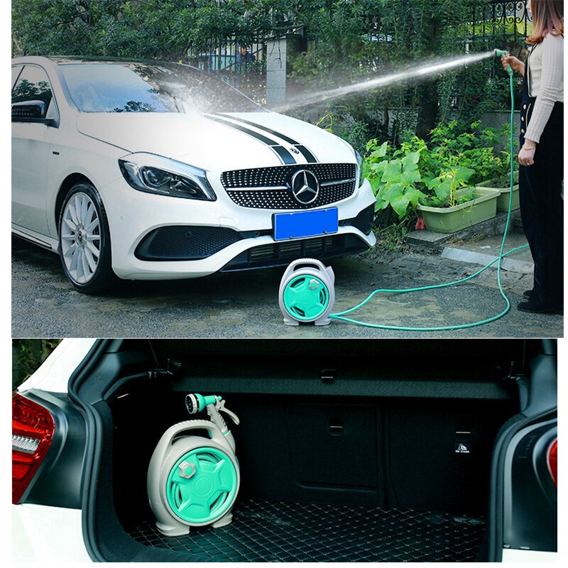 Mini Portable Car Wash Pipe High Pressure Water Gun Reel Hose Set Agricultural Home Gardening Flowers Storage Suit Cart
