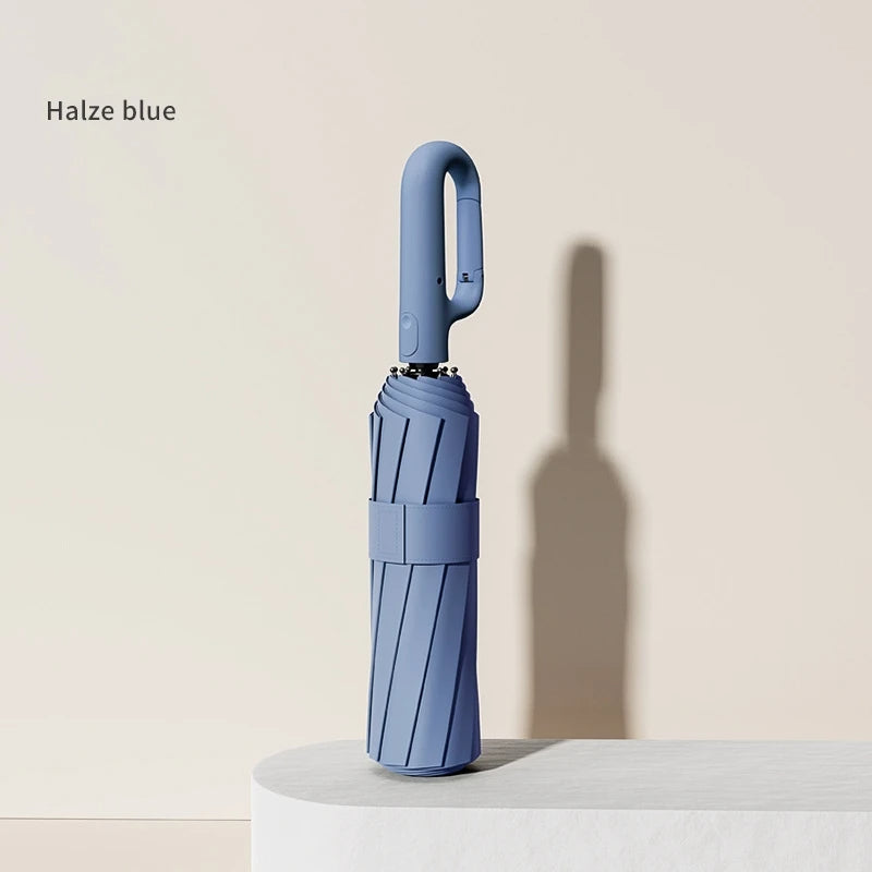 Stay shielded from the elements with the Extra Large Reinforced Automatic Umbrella, designed for both rain and sun protection. With a sleek minimalist style, this umbrella offers an impressive span of up to 125cm when open, providing ample coverage. Its sturdy 10-bone fiber frame ensures wind resistance, while the aluminum rod keeps it lightweight and durable. The umbrella fabric, crafted from impact cloth and coated with black glue, offers excellent UV protection (UPF 50+), making it a perfect companion for sunny and rainy days. The fully automatic ring-buckle system allows for quick, effortless opening and closing, while the compact three-fold design ensures easy storage. Available in elegant colors like obsidian black, forest green, and haze blue, this umbrella combines style with functionality.