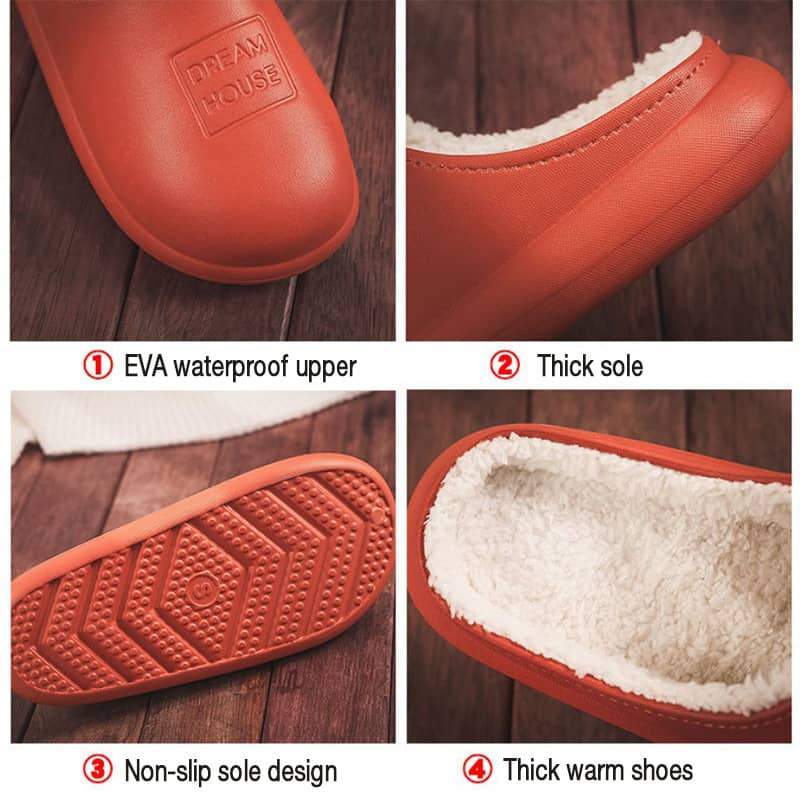 The improved durable and soft waterproof TPR soles are a great choice for indoor and moderately outdoor use if you insist. Anti-skid texture in the bottom gives you safe and secure footing and prevents scratching the floor.