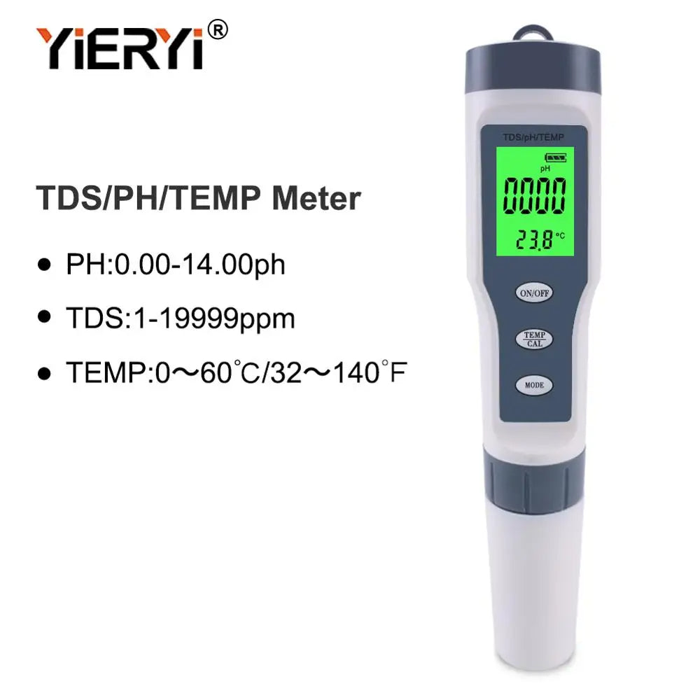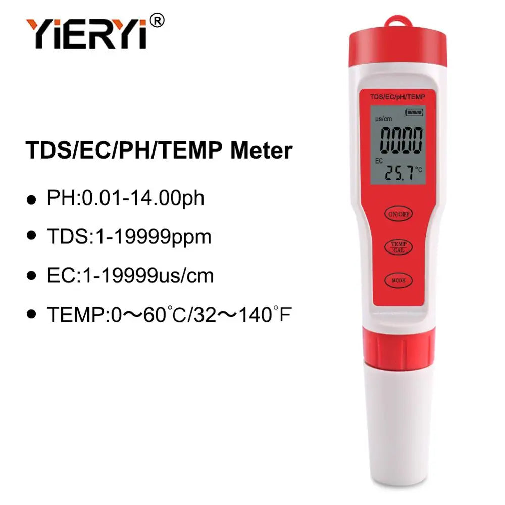 Ensure optimal water quality with the Yieryi Multifunctional TDS, PH, EC & Temperature Meter. This digital tester provides accurate readings for total dissolved solids (TDS), pH levels, electrical conductivity (EC), and temperature, making it ideal for pools, drinking water, and aquariums. Designed for precision and ease of use, this compact device features a clear LCD display and intuitive controls, ensuring reliable results every time. Perfect for maintaining healthy water conditions and achieving accurate water testing in various applications.
